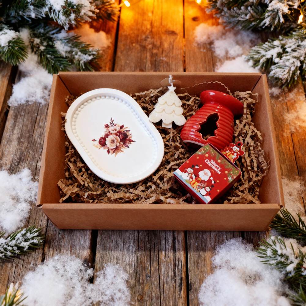 Ένα κομψό και γιορτινό Χριστουγεννιάτικο κουτί δώρου, ιδανικό για να χαρίσει ζεστασιά και αρωματική θαλπωρή στο χώρο σας.
